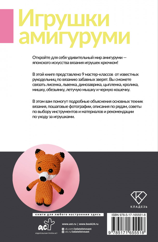 💳 Оплатить за товар можно при получении 🇰🇿 Есть бесплатная доставка по Казахстану от 1 дня 🎁 Копите бонусы с каждой покупки Серия: Рукоделие от А до Я. Лучшее В этой книге представлено 9 мастер-классов от известных рукодельниц по вязанию забавных зверят. Вы сможете связать лисенка, львенка, динозаврика, цыпленка, кролика, мишку, обезьянку, летучую мышку и черную кошечку. В этом вам помогут подробные объяснения основных техник вязания, пошаговые фотографии, описания по рядам, советы по выбору инструментов и материалов и рекомендации по уходу за игрушками. |