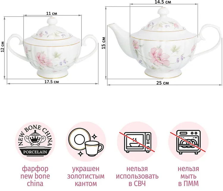 💳 Оплатить за товар можно при получении 🇰🇿 Есть бесплатная доставка по Казахстану от 1 дня 🎁 Копите бонусы с каждой покупки Серия: Диана Чайный сервиз серии «Диана» состоит из 2 предметов: чайник заварочный английский на 1 литр и сахарница на 450 мл с крышкой и ручками. Чайник для заварки имеет ситечко в носике: фильтр не пропустит чаинок. Сахарницу можно использовать как баночку для меда, варенья, соусов, специй. Набор выполнен из высококачественного белого фарфора и украшен декоративными изображениями. Фарфоровая посуда отличается от керамики повышенной плотностью. Фарфор не впитывает цвет продуктов и не деформируется от влаги, чему может быть подвержена керамическая посуда. Заварной чайник подходит для чайной свечи. Набор нельзя использовать на плите, в СВЧ и ПММ. Поставляется в стильных картонных упаковках и сможет стать приятным подарочным набором для ваших родных и близких. Набор из серии «Диана» украсит кухню и поможет провести множество уютных вечеров с любимыми напитками. |