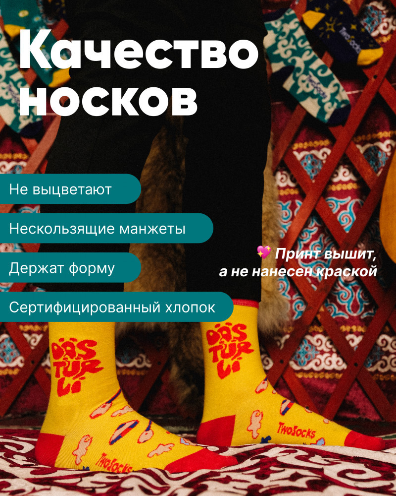 Дизайнерские носки казахстанского производства TwoSocks, вдохновленные казахской культурой. |