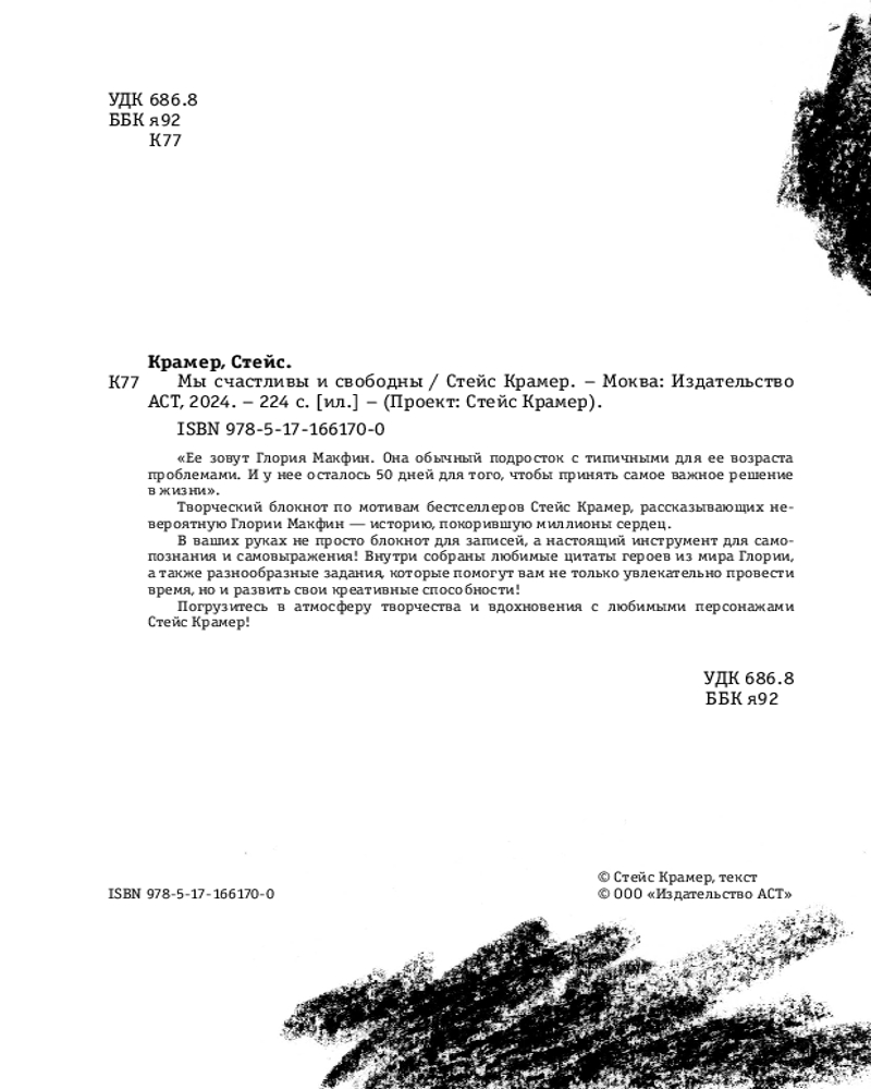 💳 Оплатить за товар можно при получении 🇰🇿 Есть бесплатная доставка по Казахстану от 1 дня 🎁 Копите бонусы с каждой покупки Серия: Проект Стейс Крамер Творческий блокнот по мотивам бестселлеров Стейс Крамер, рассказывающих невероятную Глории Макфин — историю, покорившую миллионы сердец. В ваших руках не просто блокнот для записей, а настоящий инструмент для самопознания и самовыражения! Внутри собраны любимые цитаты героев из мира Глории, а также разнообразные задания, которые помогут вам не только увлекательно провести время, но и развить свои креативные способности! Погрузитесь в атмосферу творчества и вдохновения с любимыми персонажами Стейс Крамер! |