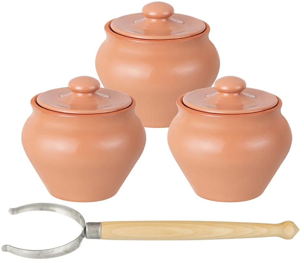 Из трех крышек- только одна по размеру. Одна меньше, чуть не проваливается в горшок, одна больше чем надо. Из-за этого горшочки закрываются не плотно.