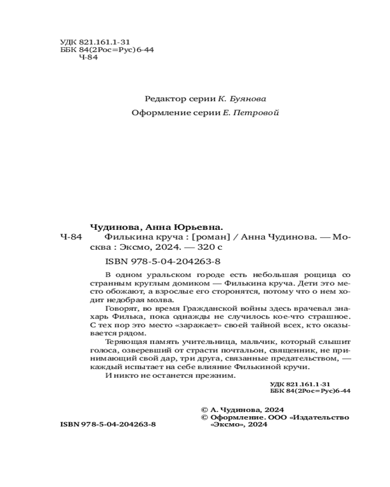 В данный момент этот товар отсутствует в продаже. Возможно, у нас найдется аналогичный или похожий товар здесь. Серия: Почти счастливые люди В одном уральском городе есть небольшая рощица со странным круглым домиком — Филькина круча. Дети это место обожают, а взрослые его сторонятся, потому что о нем ходит недобрая молва.