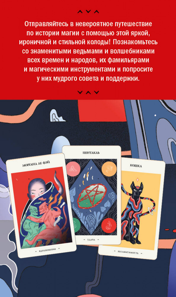 💳 Оплатить за товар можно при получении 🇰🇿 Есть бесплатная доставка по Казахстану от 1 дня 🎁 Копите бонусы с каждой покупки Серия: Карты для гаданий. Таро Хотите получить напутствие от самого Мерлина? А может, от Елены Петровны Блаватской или Алистера Кроули? Отправляйтесь в невероятное путешествие по истории магии с помощью этой яркой, ироничной и стильной колоды! Вы познакомитесь со знаменитыми ведьмами и волшебниками всех времен и народов, животными-фамильярами и магическими инструментами и сможете получить мудрый совет и поддержку в любой ситуации. |