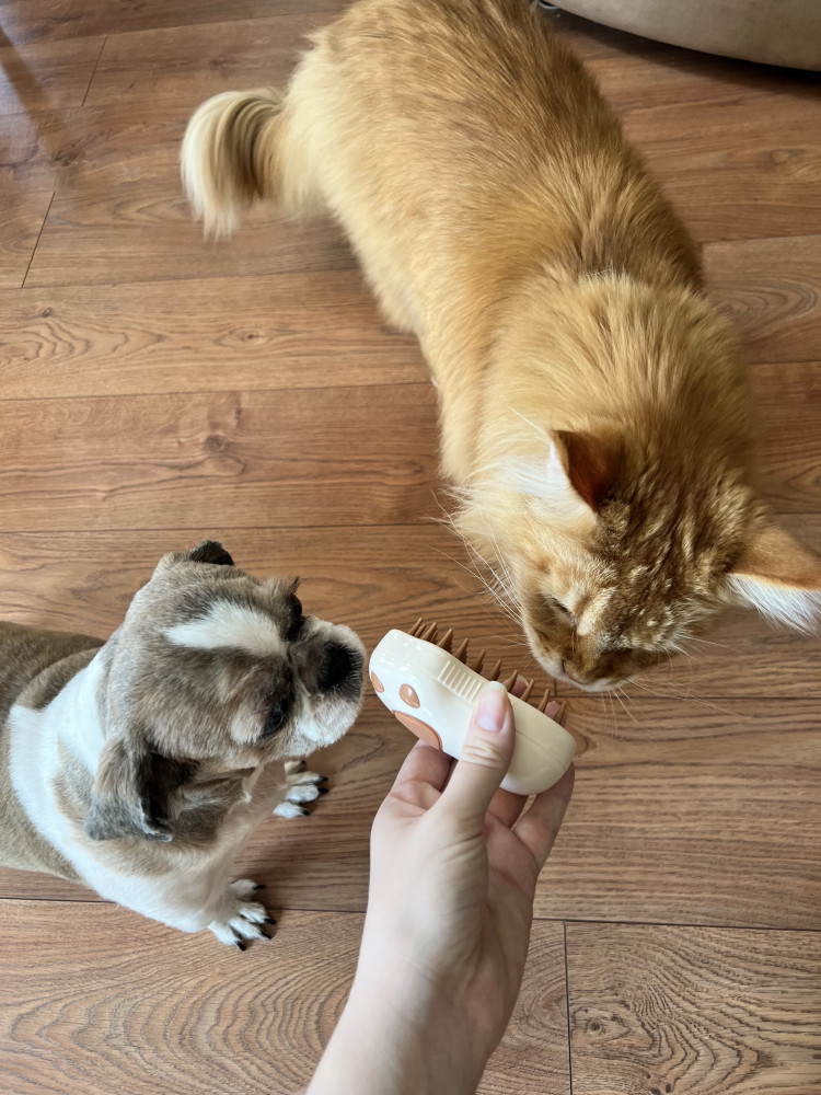 Стараемся вычесывать Мейн Куна почаще, иначе все вокруг покрывается слоем шерсти. Эта штучка выручает и коту нравится 👍🏼