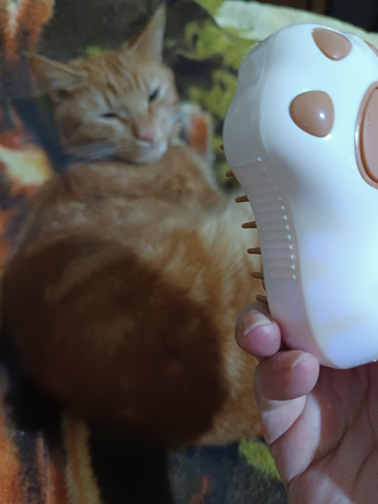 Классная щётка, мои коты ее не боятся, потому, что щетинки мягкие, резиновые, не травмируют и работает бесшумно. Очень хорошо вычесывает, шерстинки прилипают к щетинкам, не разлетаются во все стороны. Приобретением довольна, от и до. Дизайн, размер, все понравилось. Купила со скидкой.