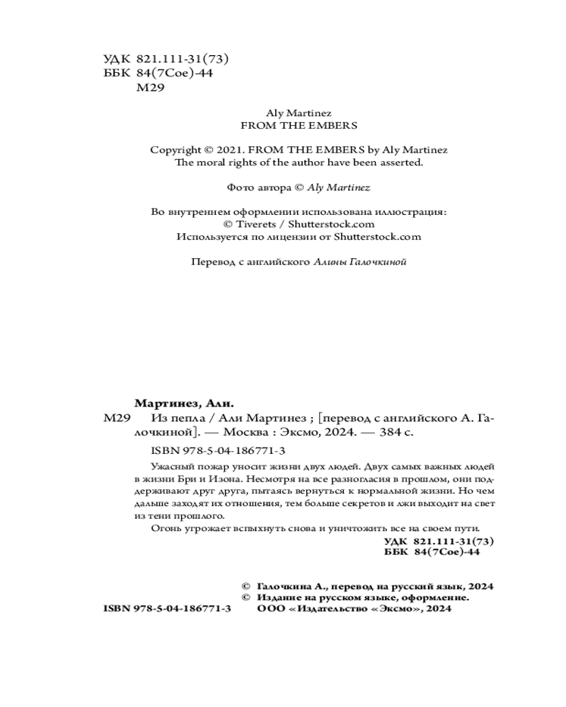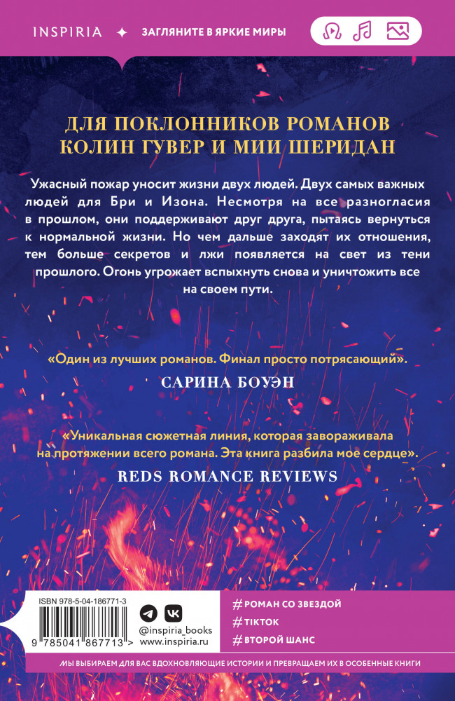 💳 Оплатить за товар можно при получении 🇰🇿 Есть бесплатная доставка по Казахстану от 1 дня 🎁 Копите бонусы с каждой покупки Серия: Cupcake. Бестселлеры Буктока. Али Мартинез Ужасный пожар уносит жизни двух людей. Двух самых важных людей в жизни Бри и Изона. Несмотря на все разногласия в прошлом, они поддерживают друг друга, пытаясь вернуться к нормальной жизни. Но чем дальше заходят их отношения, тем больше секретов и лжи выходит на свет из тени прошлого. Огонь угрожает вспыхнуть снова и уничтожить все на своем пути. |