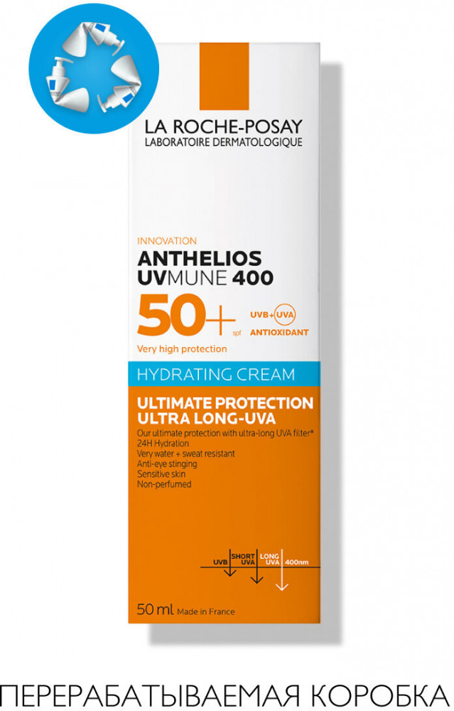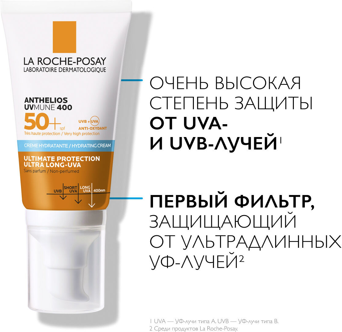 La Roche-Posay Крем для лица солнцезащитный «Anthelios Uvmune 400» SPF 50+ / PPD 30В данный момент этот товар отсутствует в продаже. Возможно, у нас найдется аналогичный или похожий товар здесь. Защита от широкого спектра УФ-лучей: UVB-, UVA- и ультрадлинных UVA-лучей. Инновационный1 UV-фильтр Mexoryl 400 защищает от ультрадлинных UVA-лучей (380-400 нм) которые незаметны, повреждают кожу на глубоком клеточном уровне и составляют 30% УФ-лучей, воздействующих на кожу круглый год. |