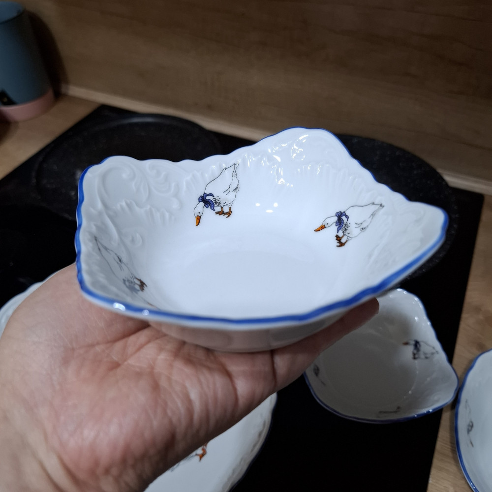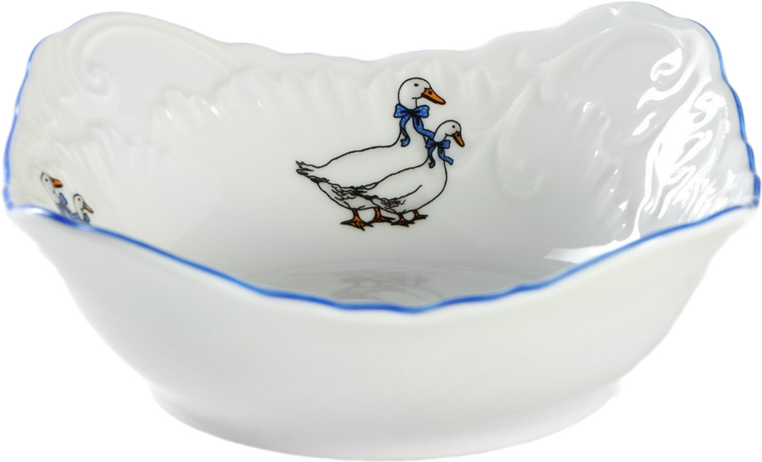 Cmielow Салатник «Гуси»красивая салатница набор салатников красивая серия В данный момент этот товар отсутствует в продаже. Возможно, у нас найдется аналогичный или похожий товар здесь. Серия: Rococo. Гуси Посуда серии «Рококо. Гуси» — это европейский фарфор, украшенный лаконичной росписью. Он позволит оформить стол со вкусом: поверхность нежного молочного цвета радует глаз, а оригинальный рельеф придаёт особый шарм. Образ удачно завершает декоративный синий кант. |