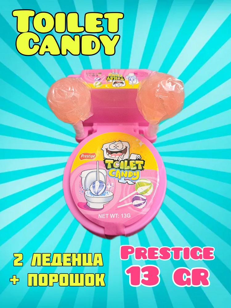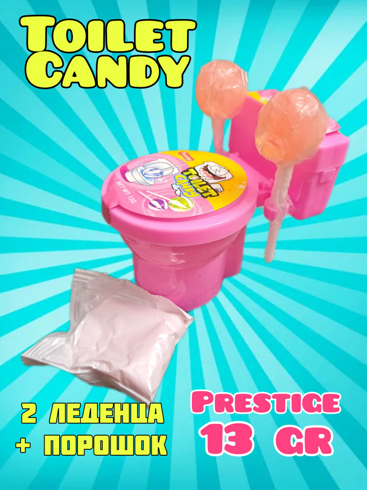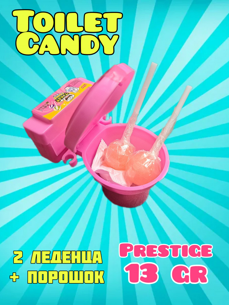 Карамель на палочке с пудрой «Toilet Candy» 13 гр 2шт. Сладости для детей леденцы необычный набор сладостей от Prestige "Toilet candy«.Забавный игрушечный унитаз, к каждому унитазу прикреплён леденец на палочке, а внутри унитаза под крышкой кислая пудра. Чтобы достать кислую пудру, обмакните леденец на палочке прямо в унитаз, так же можно все съесть по отдельности. Выберете свой вкус «Toilet Candy» из ассорти вкусов в одной упаковке. Поделитесь с кисло-сладким вкусом со своими друзьями близкими родными братьями сестрами, никто не останется равнодушным к такому набору. Забавное лакомство можно вручить в виде подарка на день рождения школьные праздники для детских праздников. Ведь дети так любят что-то необычное и вкусное.