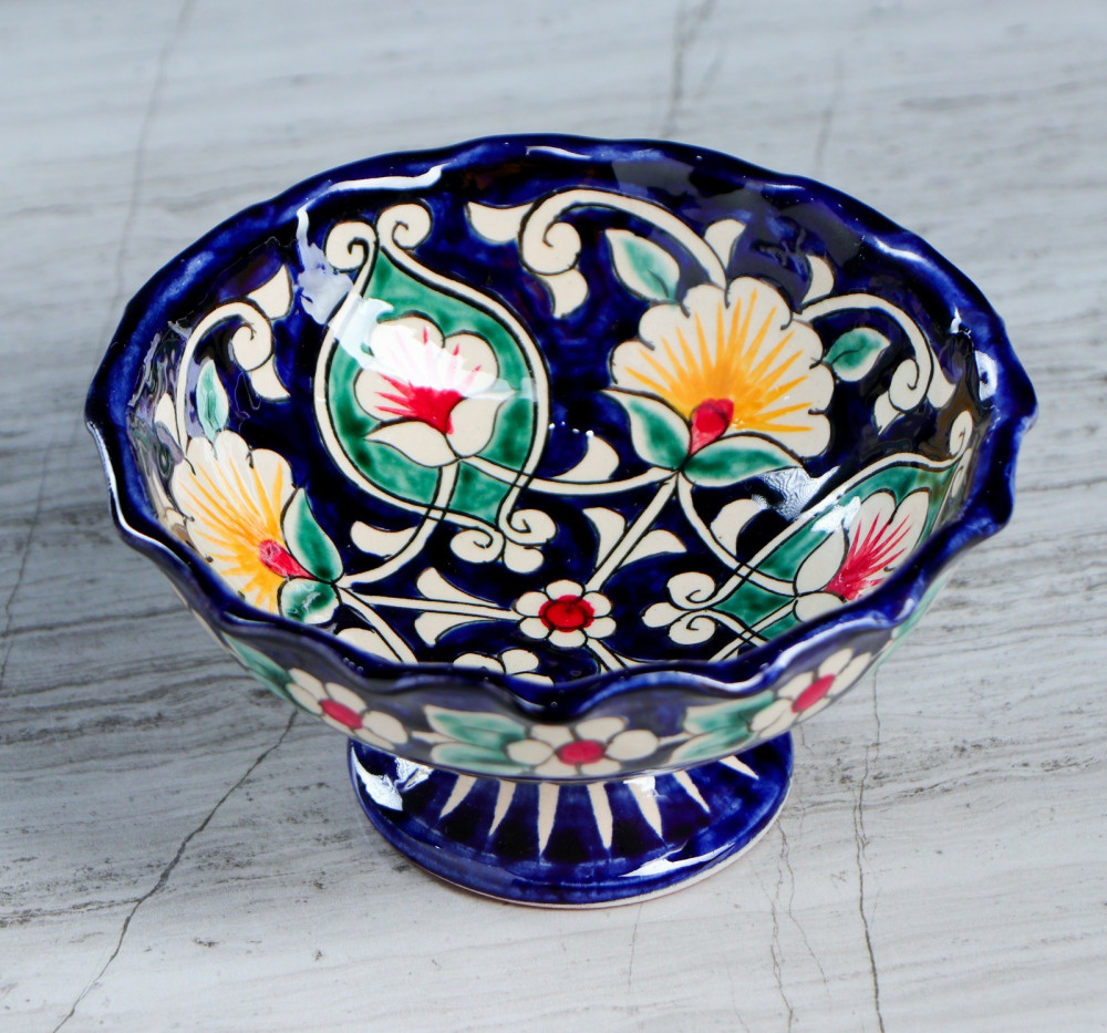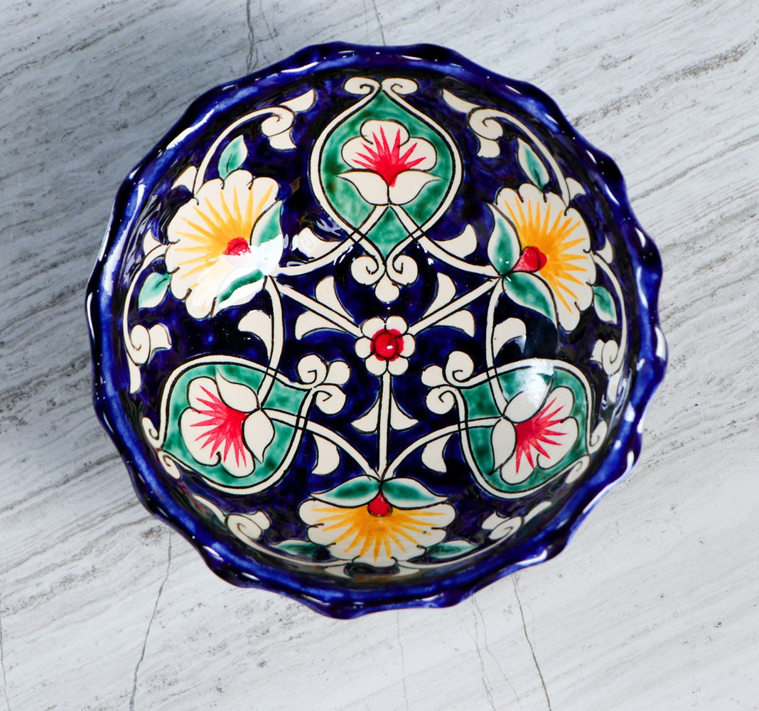 Посуда с национальной росписью станет отменным подарком для ценителей высокородной посуды. Риштан — город на востоке Узбекистана, один из древнейших в Ферганской долине. С давних времён Риштан славится своим гончарным искусством изготовления цветной керамики. Красноватую глину для изделия добывают в самом городе. Мастера утверждают, что их глина настолько высокого качества, что даже не нуждается в предварительной обработке. Дополните коллекцию кухонных аксессуаров пряными восточными нотами.