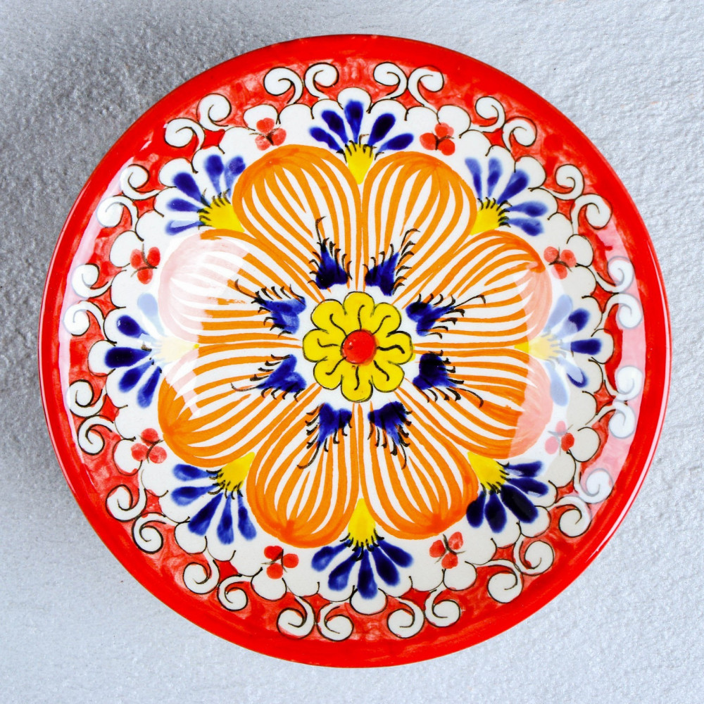 Посуда с национальной росписью станет отменным подарком для ценителей высокородной посуды. Риштан — город на востоке Узбекистана, один из древнейших в Ферганской долине. С давних времён Риштан славится своим гончарным искусством изготовления цветной керамики. Красноватую глину для изделия добывают в самом городе. Мастера утверждают, что их глина настолько высокого качества, что даже не нуждается в предварительной обработке. Дополните коллекцию кухонных аксессуаров пряными восточными нотами.