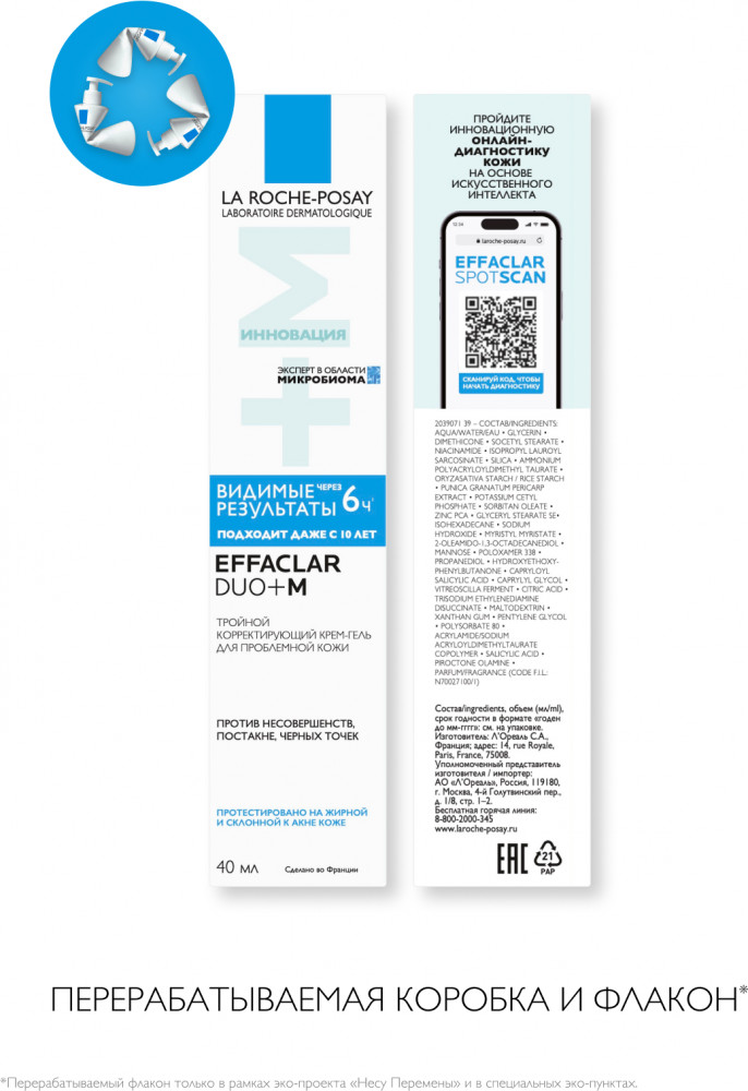 отличный крем пользовалась несколько лет Effaclar Duo, недавно его сняли с производства и начала пользоваться этим кремом Effaclar Duo+M, ничем не отличается все устраивает