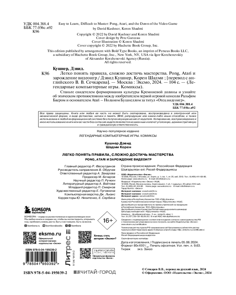 💳 Оплатить за товар можно при получении 🇰🇿 Есть бесплатная доставка по Казахстану 🎁 Копите бонусы с каждой покупки Серия: Легендарные компьютерные игры. Комиксы Лучшие игры очень похожи на жизнь: легко понять правила, сложно достичь мастерства! В центре этой графической истории эпическое противостояние, бушевавшее между инженером Ральфом Баером — изобретателем первой игровой консоли — и Ноланом Бушнеллом — основателем Atari, укравшим идею у Ральфа и создавшим игру PONG. Так началась битва за титул «Отец видеоигр». Познакомьтесь с захватывающей историей происхождения нового вида развлечений вместе с Баером и Бушнеллом, став свидетелем формирования культуры Кремниевой долины. |