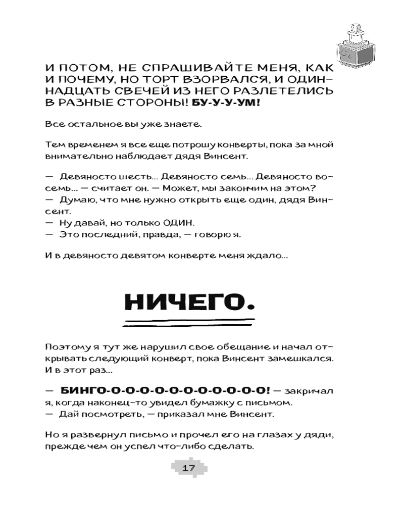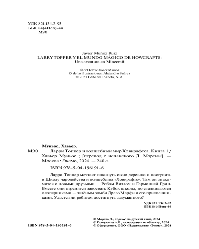 💳 Оплатить за товар можно при получении 🇰🇿 Есть бесплатная доставка по Казахстану от 1 дня 🎁 Копите бонусы с каждой покупки Серия: Ларри Топпер в волшебном мире Майнкрафт Ларри Топперу осточертело есть сырую треску, надоели его дядя и тетя с раздражающим сынком и надоело быть деревенским никем. Его жизнь кардинально меняется, когда он получает письмо о зачислении в Школу Чародейства и Волшебства «Ховкрафтс». По пути в академию он встречает своих будущих одноклассников — Роба Визла, снежного голема, и Гармонию Грин, милую деревенскую жительницу. Троица постарается приложить все усилия, чтобы сделать свой дом, престижный факультет Нижнего мира, обладателем бесценного кубка Ховкрафтса. Им придется нелегко, ведь против них Драго Марфи, зеленый зомби, и его приспешники утопленники, оказавшиеся в доме Края. |