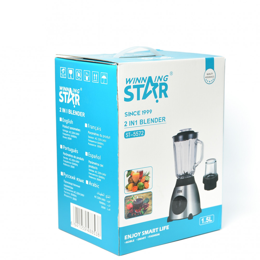 Winning Star БлендерВ данный момент этот товар отсутствует в продаже. Возможно, у нас найдется аналогичный или похожий товар здесь. Блендер ST-5572— это стильное и функциональное устройство, выполненное в сочетании нержавеющей стали и черного цвета. Он оснащен мощным двигателем на 350 Вт и работает от сети 220-240 В, 50/60 Гц. Блендер предлагает мультифункциональность: его можно использовать как блендер и как измельчитель, что делает его идеальным для приготовления различных блюд. В комплект входят две чаши с крышками, что позволяет легко хранить приготовленные ингредиенты. Блендер имеет 5-скоростной контроль, обеспечивающий точную настройку для разных типов продуктов. Модель оснащена надежной вилкой VDE/BS и изготовлена из качественных материалов, включая нержавеющую сталь, PE и PP, что гарантирует долговечность и удобство использования.  |