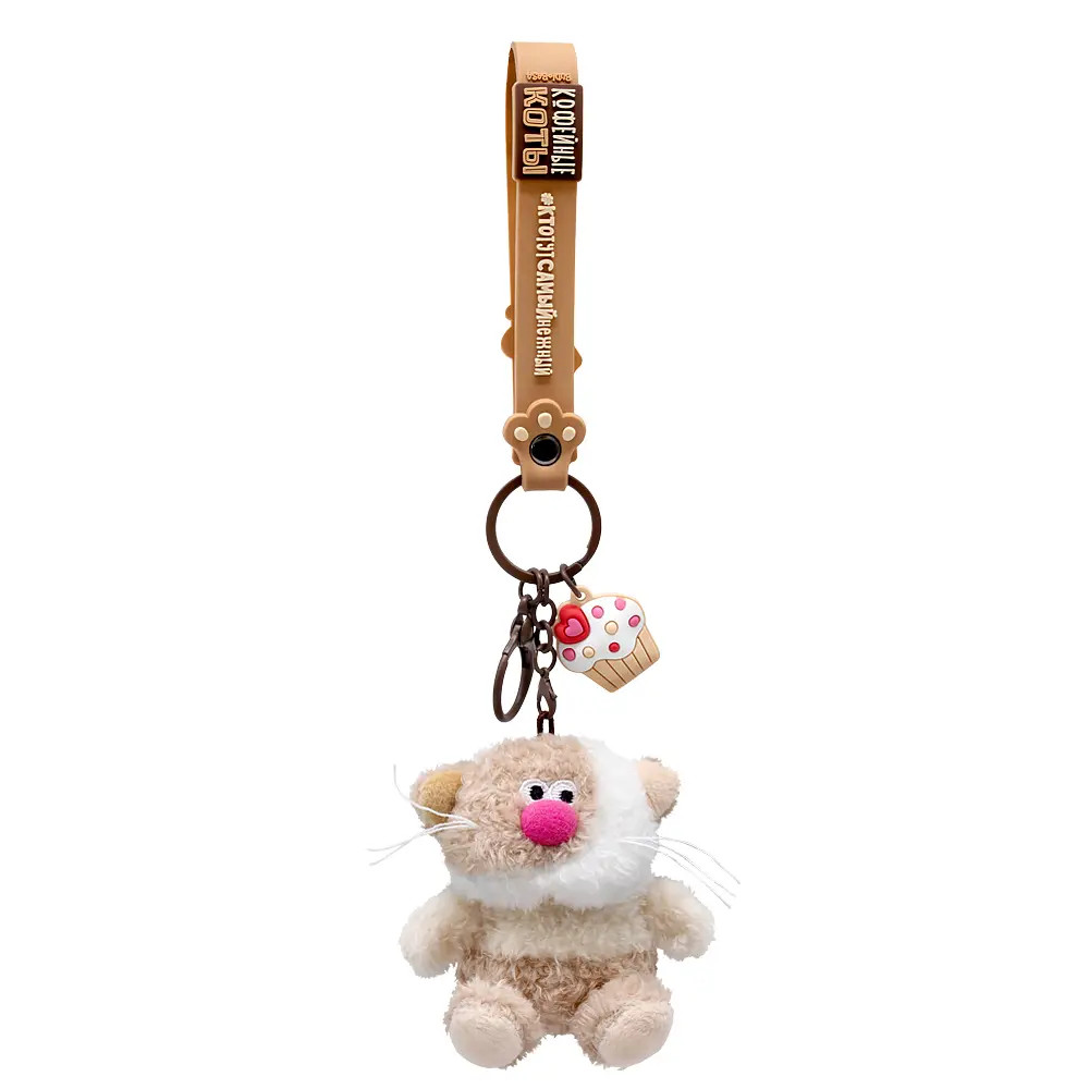 💳 Оплатить за товар можно при получении 🇰🇿 Есть бесплатная доставка по Казахстану от 1 дня 🎁 Копите бонусы с каждой покупки Кот брелок Латте. Брелок сшит из тактильно приятного эко меха в трех оттенках: цвета молочного какао, цвета топленого молока и белоснежного цвета молочной пенки. Усики из шелковистого кручёного шнура. Объемный носик обтянут розовым софтом. Глазки вышиты. Пяточки из софта цвета крема, а внутри ушек софт сливочного цвета. Брелок крепится на кольцо шоколадного цвета с силиконовыми подвесами. Один подвес – это браслет с хештегом «ктоТУТсамыйНЕЖНЫЙ» на кнопке и с фирменным логотипом «Кофейные коты». Другой подвес – пирожное с белым кремом, посыпкой и розовым сердечком. |