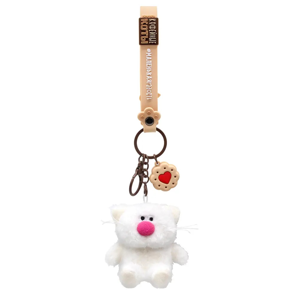 💳 Оплатить за товар можно при получении 🇰🇿 Есть бесплатная доставка по Казахстану от 1 дня 🎁 Копите бонусы с каждой покупки Кот брелок Молоко. Брелок сшит из тактильно приятного эко меха белоснежного цвета. Усики из шелковистого кручёного шнура. Объемный носик обтянут розовым софтом. Глазки вышиты. На пяточках и внутри ушек вшит молочный софт. Брелок крепится на кольцо шоколадного цвета с силиконовыми подвесами. Один подвес – это браслет с хештегом «маленькаяРАДОСТЬ» на кнопке и с фирменным логотипом «Кофейные коты». Другой подвес – печенье с розовым сердечком. |