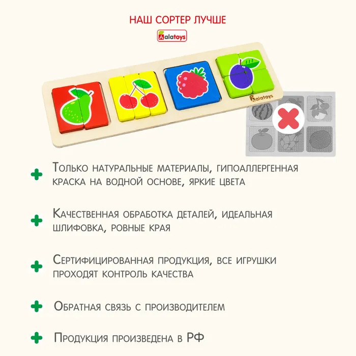 💳 Оплатить за товар можно при получении 🇰🇿 Есть бесплатная доставка по Казахстану от 1 дня 🎁 Копите бонусы с каждой покупки Бюджетная игрушка из качественных материалов, доступная каждому родителю. Один из самых недорогих сортеров в нашем ассортименте. Сортер для детей «Ягоды» по методике Монтессори. Яркая деревянная игрушка. Фигуры объемные, их приятно держать в руках, платформа сделана из древесины и имеет приятный натуральных запах. Играя с ребенком, обязательно произносите названия ягод, чтобы он быстрее их запомнил. Собирайте фигуры, и называется названия ягод. Так ребенок быстрее запомнит всё и сможет заниматься без ваших подсказок.Игрушка протестирована педагогами и логопедами. Выбор мам! |