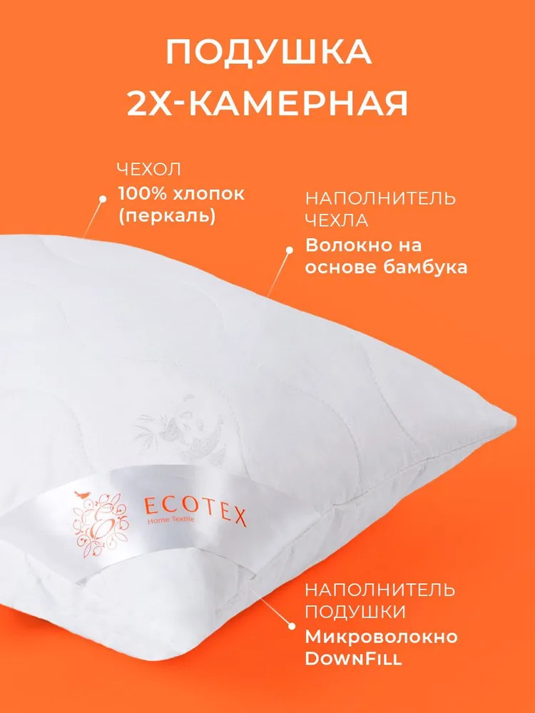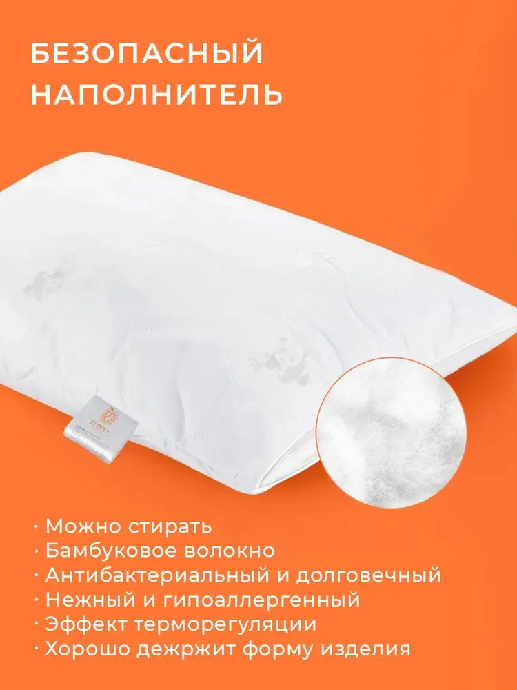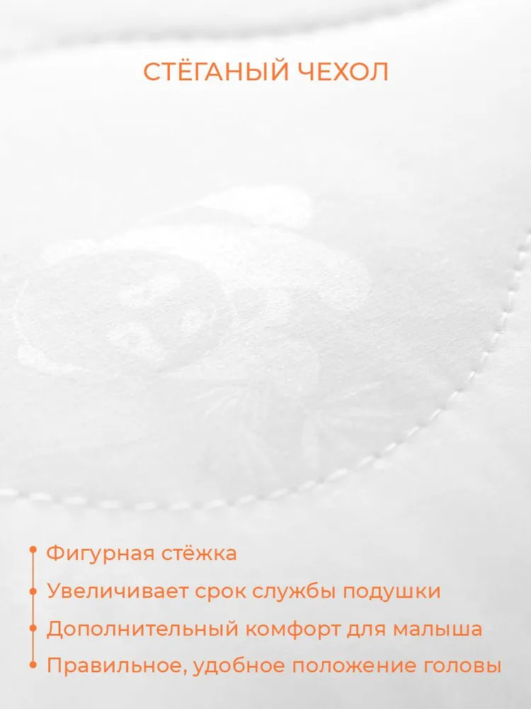 Бамбуковое волокно расположено в стёганом чехле подушки, анатомическая стёжка придерживает слой наполнителя и не даёт ему перемещаться внутри чехла, тем самым увеличивая срок службы изделия и создавая дополнительный комфорт для малыша. Остальной объём подушки занимает гипоаллергенное высокосиликонизированное микроволокно DownFill, называемое «синтетическим лебяжьим пухом» — волокном нового поколения.