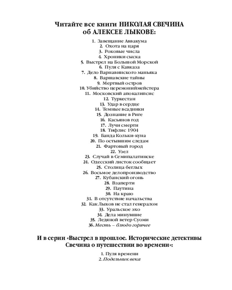 💳 Оплатить за товар можно при получении 🇰🇿 Есть бесплатная доставка по Казахстану от 1 дня 🎁 Копите бонусы с каждой покупки Серия: Детектив Российской империи (обложка) Новая книга модного автора ретро-детективов Николая Свечина, популярного в жанре! Книга входит в цикл произведений о сыщике Алексее Лыкове и является 34-й по счету, но ее можно читать и как самостоятельное произведение. |