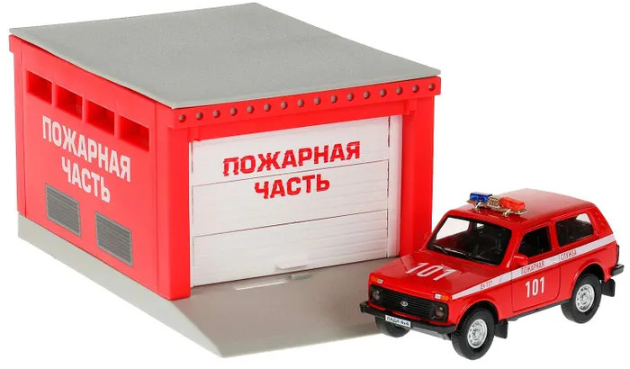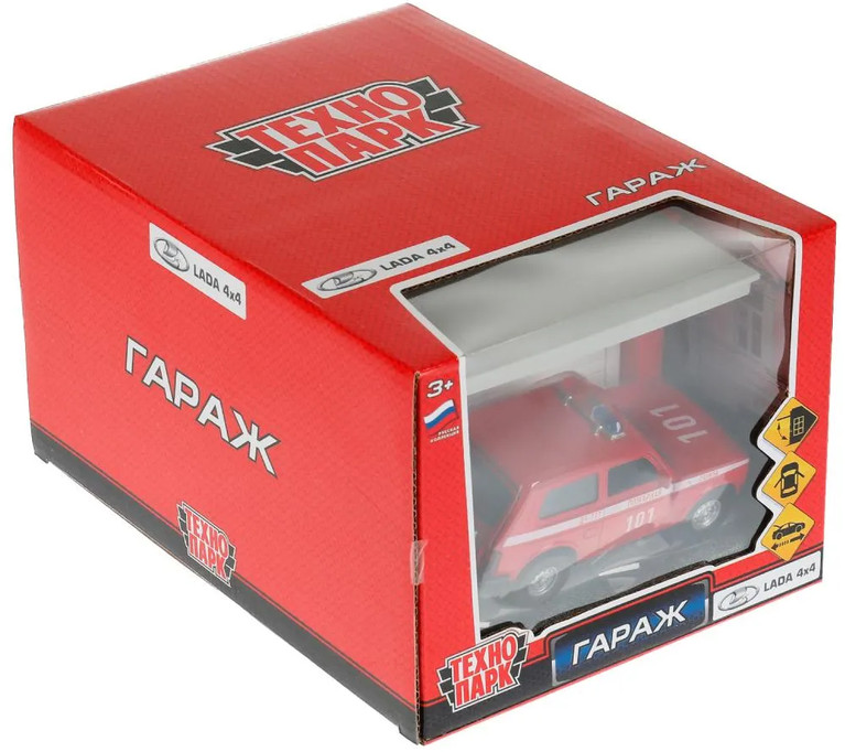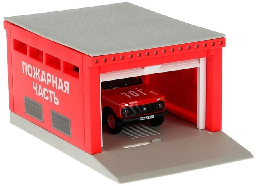 • в комплекте: гараж, модель пожарной машины «Lada 4 × 4»;