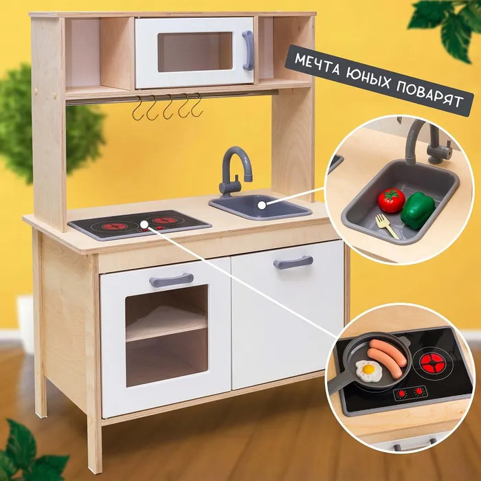 Хотите увлекательных сюжетно-ролевых игр своих маленьких кулинаров? Тогда детская кухня игровая — это отличная игра . Деревянная игрушечная кухня не только разнообразит досуг ребенка, но и разовьет логическое мышление, фантазию и творческий подход к решению любых задач. Кухня детская игровая большая, в ней много места для разных аксессуаров. Кухня детская игровая деревянная предназначена как для девочек, так и для мальчиков.