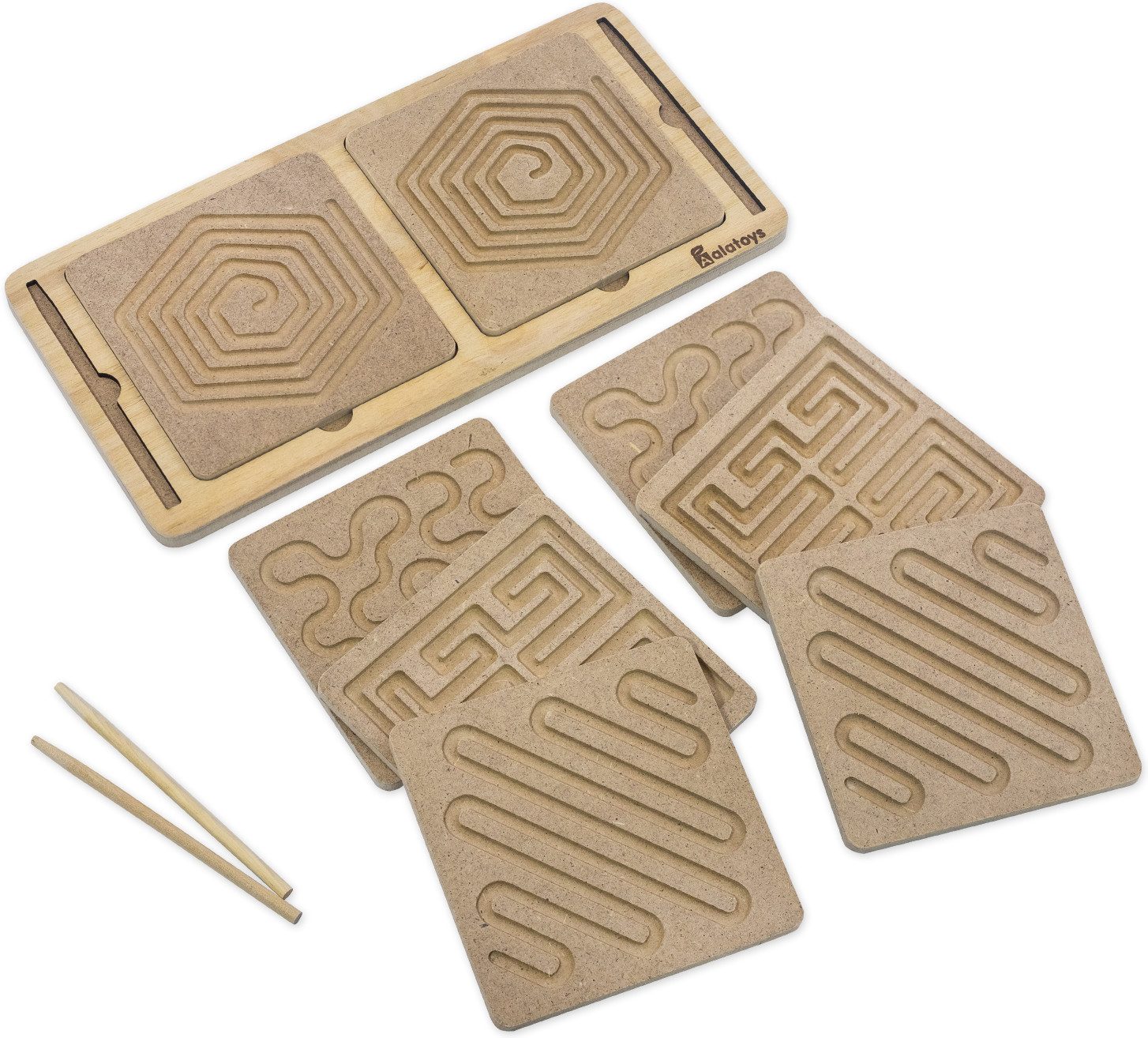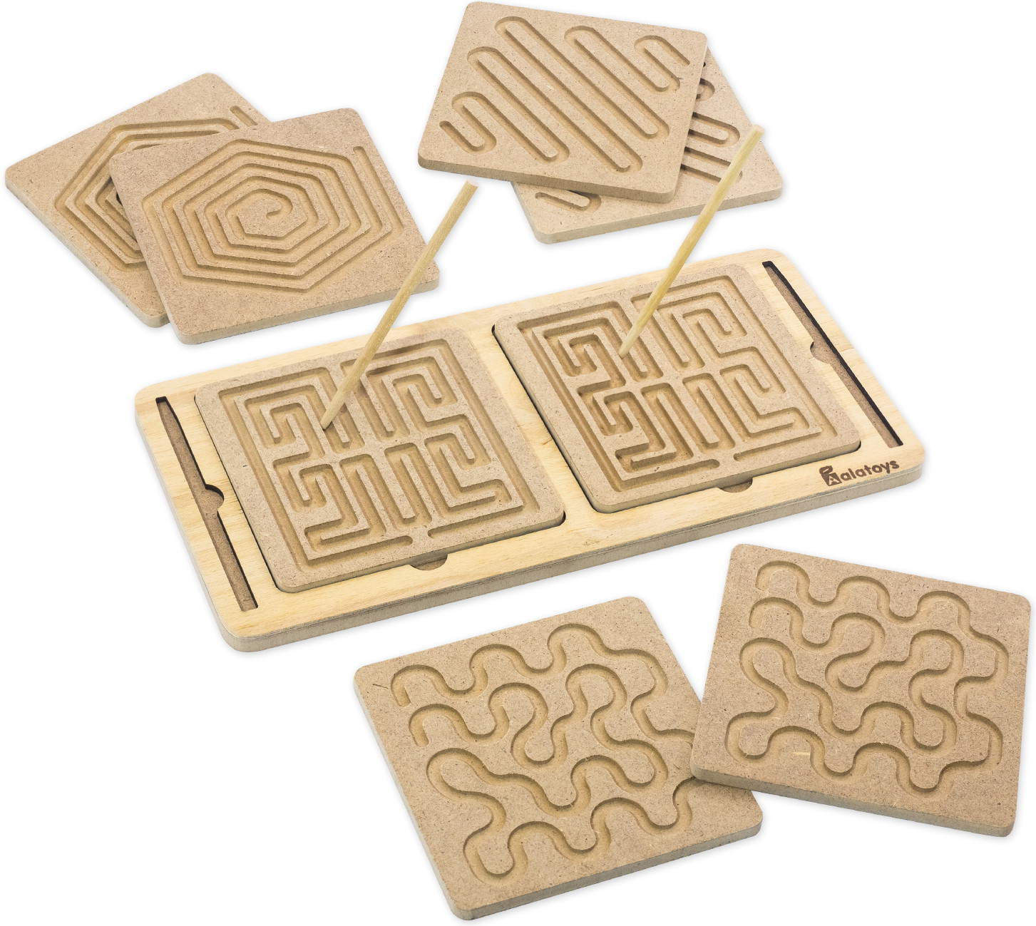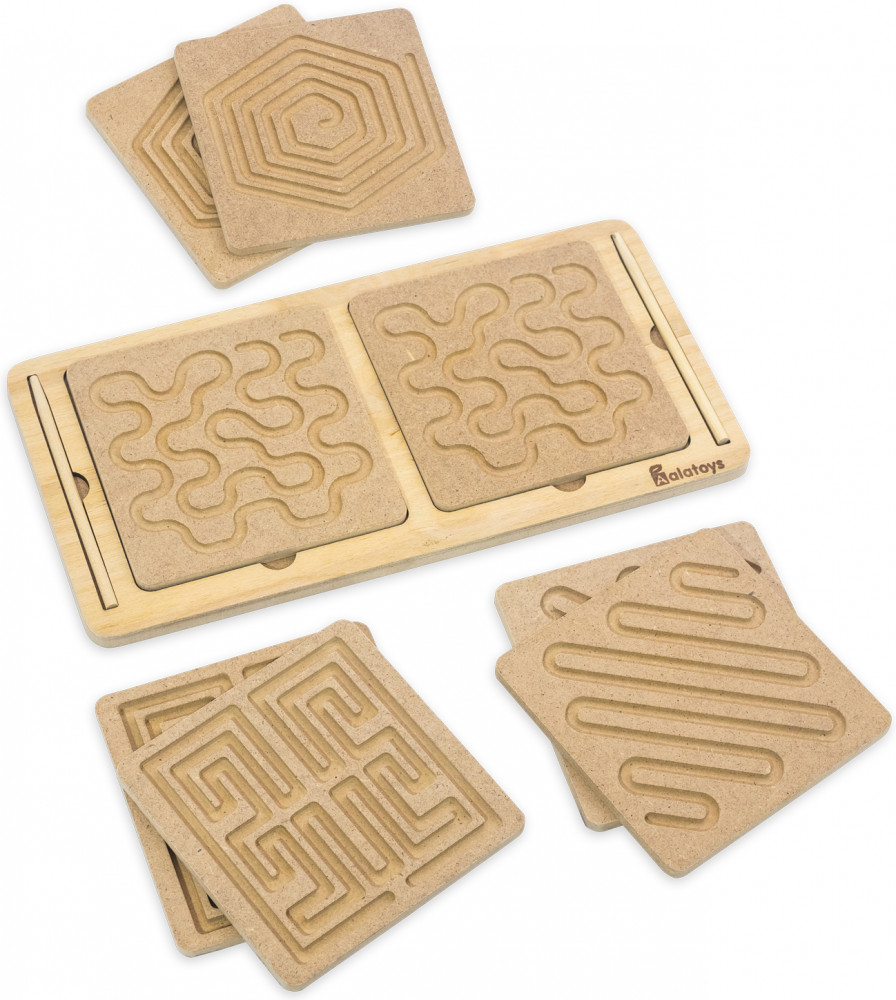 Игрушки головоломки сделаны в форме лабиринта, водя по которому тренируется память и усидчивость. Логопедические игры способствует быстрому запуску речи для малышей. С 3-5 лет нейро игры подготовят руку к письму и помогут более внятно читать.