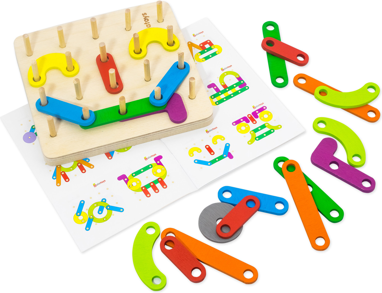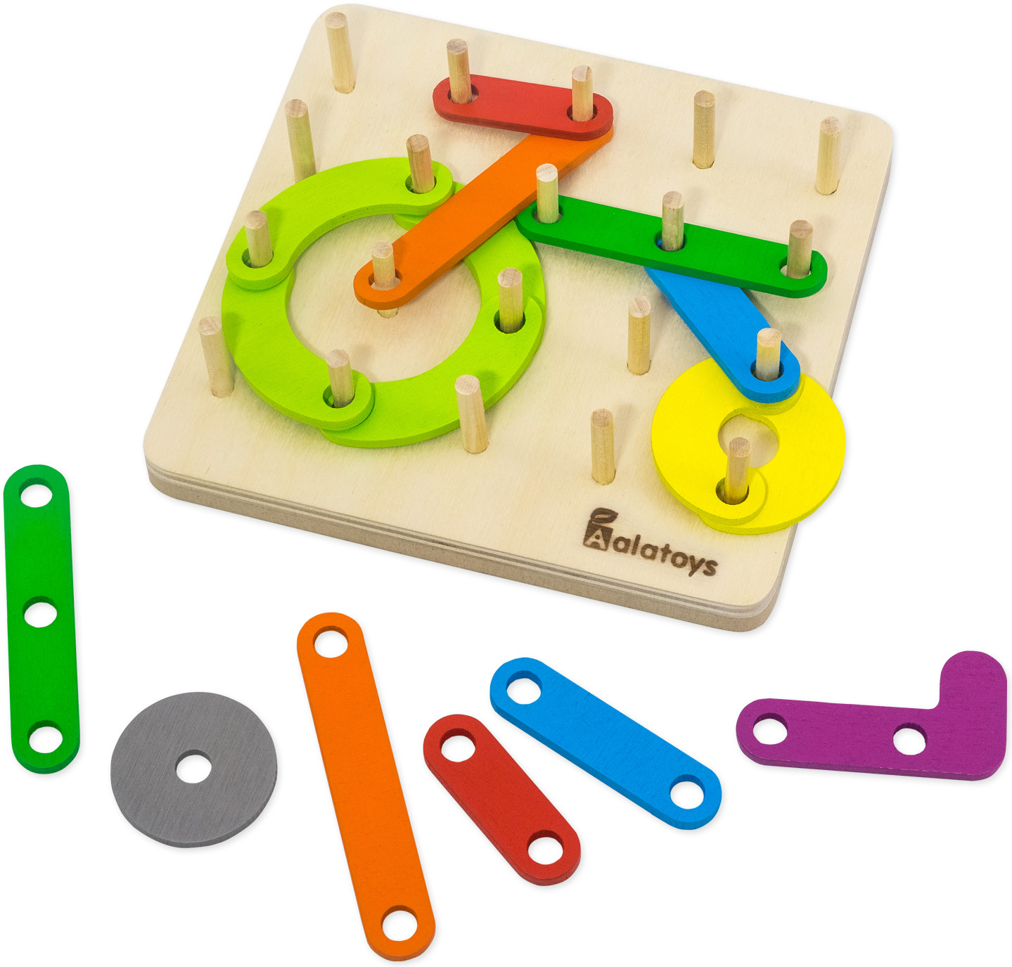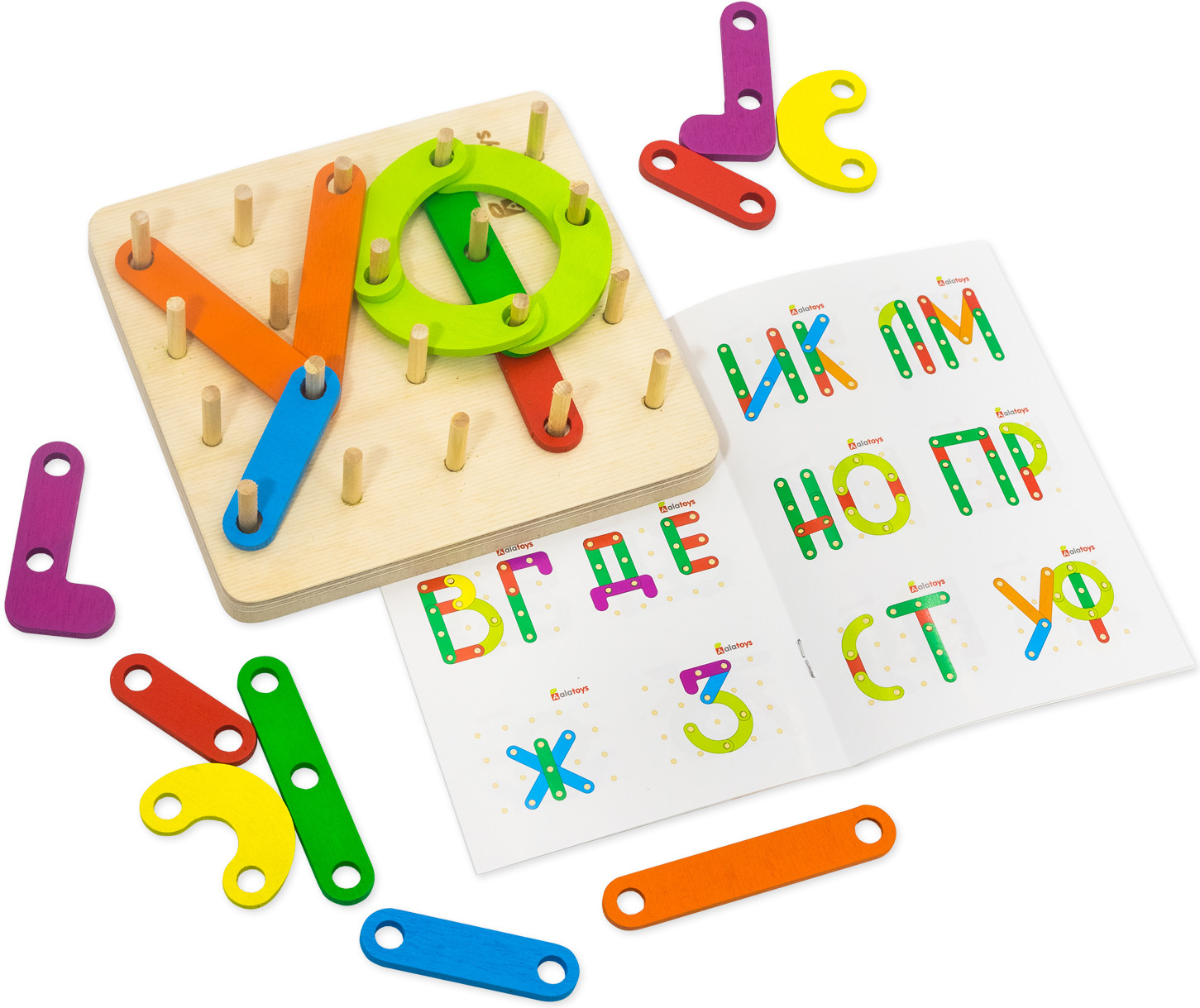 Геоборд — это развивающая игрушка, которая предназначена для детей разного возраста. Это доска с деревянными колышками и резинками, которые натягиваются на колышки, образуя различные фигуры. Геоборд считается одной из лучших игрушек для развития моторики рук у малышей. Развивающая игрушка Геоборд — многофункциональная геометрическая доска для конструирования плоских изображений. Возможности математического планшета настолько широки, что использовать его можно в развивающих играх и обучении деток с 3 лет, дошкольников и младших школьников.