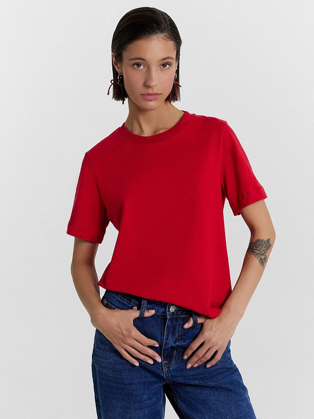 Футболочка классная, качество отличное! Размер в размер не в обтяжку, супер.