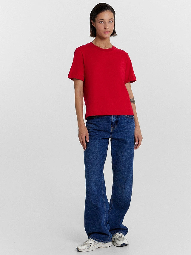 обычно беру размер хл, но у этой футболки свободный крой и л села лучше. нравятся длина, самое то для широких джинс.