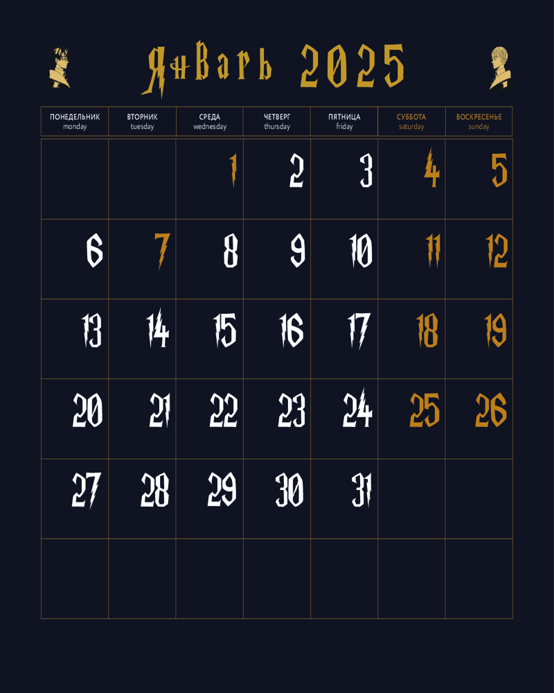 Календарь настенный на 2025 год «Гарри Поттер. Коллекция „Аниме“»В данный момент этот товар отсутствует в продаже. Возможно, у нас найдется аналогичный или похожий товар здесь. Серия: Календари настенные 2025 (300×300) Календарь с 12 очаровательными иллюстрациями в стиле аниме по всем любимой магической вселенной! Отличное полиграфическое исполнение и удобная сетка, в которой отмечены все государственные праздники — все это будет дарить вам такие незабываемые эмоции каждый день, что вы не заметите, как пролетит целый год! Отличный подарок себе и друзьям! |