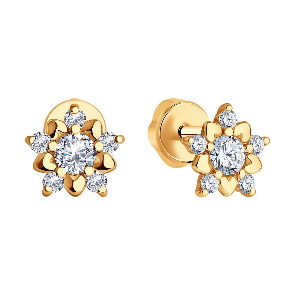 SOKOLOV Серьги-пусеты из золочёного серебра с фианитами