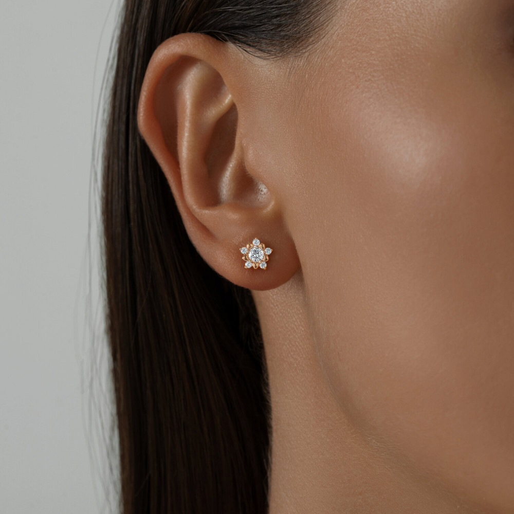 SOKOLOV Серьги-пусеты из золочёного серебра с фианитами
