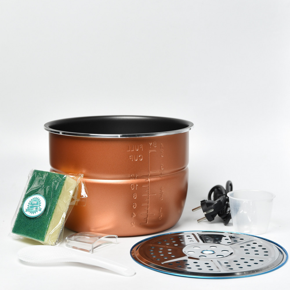 Winning Star Мультиварка ST-9303В данный момент этот товар отсутствует в продаже. Возможно, у нас найдется аналогичный или похожий товар здесь. Мультиварка-скороварка — это революционный прибор, который сочетает в себе функции традиционной мультиварки, и скороварки. Если раньше приготовление вкусных и полезных блюд занимало у вас часы, то с этим устройством всё изменится. Теперь можно готовить быстрее, удобнее и без лишних хлопот. Скороварка-мультиварка — идеальное решение для занятых людей, которые ценят своё время. Она позволяет готовить под давлением, что значительно сокращает время готовки, не жертвуя при этом качеством.Что касается удобства использования, то мультиварка скороварка, не имеет себе равных. Управление происходит через простой и интуитивно понятный интерфейс, а наличие множества предустановленных программ позволяет готовить разнообразные блюда одним нажатием кнопки. От супов и каш до тушёного мяса и десертов — возможности ограничены лишь вашим воображением. Одним из главных преимуществ пароварка, является сохранение питательных веществ в продуктах. Благодаря быстрому приготовлению под давлением, витамины и микроэлементы остаются в еде, делая её не только вкусной, но и полезной. Также такой способ готовки позволяет сохранить естественный вкус и аромат продуктов, что делает блюда, особенно аппетитными. |