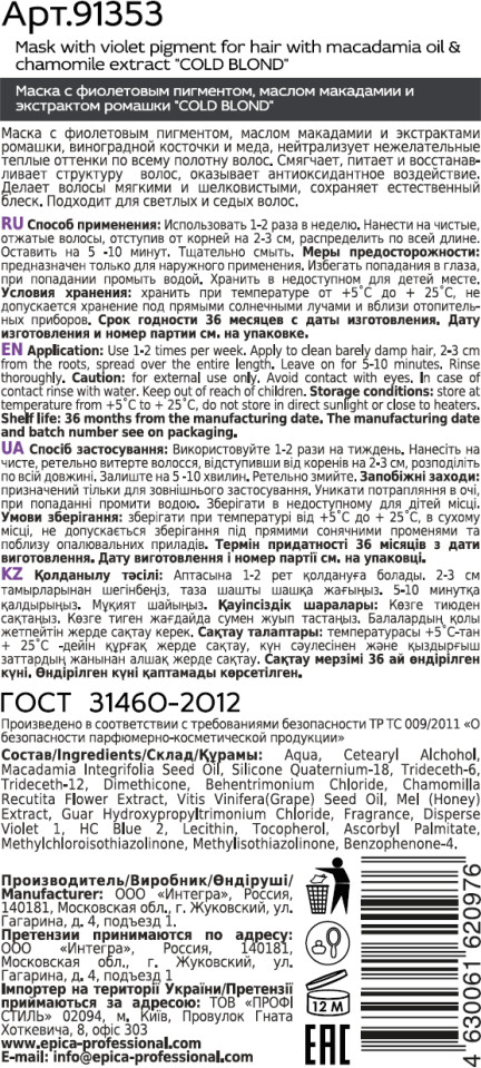 EPICA Professional Маска с фиолетовым пигментом «Cold Blond»