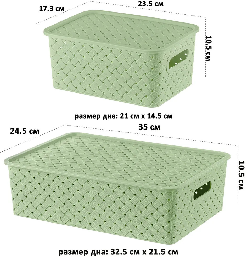 • корзина с крышкой объемом 3 литра (23.5 × 17.3 × 10.5 см) — 2 шт.;