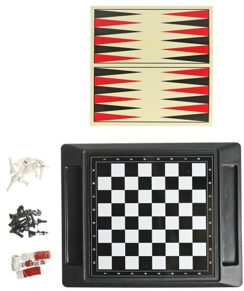 Замечательный набор из трёх настольных игр поможет интересно и с пользой провести досуг. Подходит для игр с друзьями или в кругу семьи. Компактный набор со складной доской удобно хранить и брать собой в путешествие.