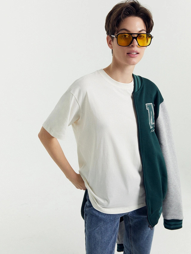 Мне очень понравилась эта футболка. Она свободная, но сидит очень аккуратно, не мешком. Цвет необычный и очень красивый.