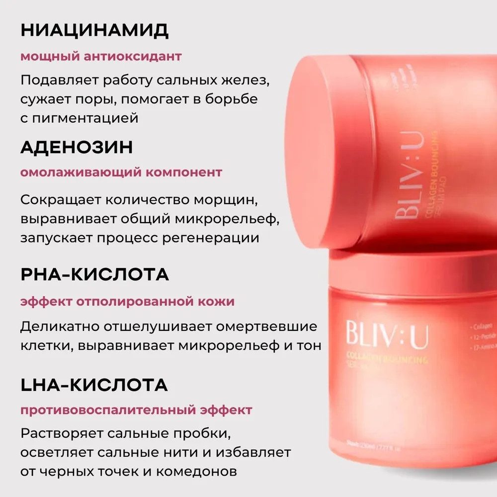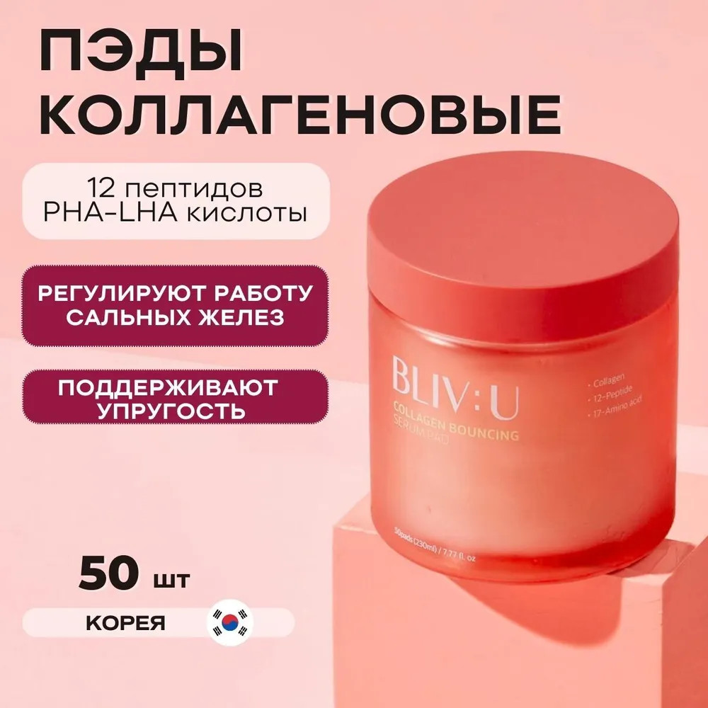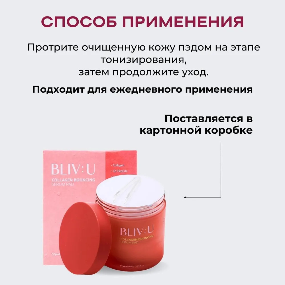 BLIV:U Тонер-пэды для лица с пептидами и коллагеном антивозрастные «Collagen Bouncing Serum Pad»