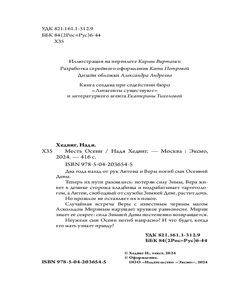 💳 Оплатить за товар можно при получении 🇰🇿 Есть бесплатная доставка по Казахстану от 1 дня 🎁 Копите бонусы с каждой покупки Серия: Охотники за мирами Два года назад от рук Антона и Веры погиб сын Осенней Девы. Теперь их пути разошлись: потеряв силу Зимы, Вера живет в домике сторожа кладбища и подрабатывает таргетологом, а Антон, свободный от службы Зимней Деве, растит дочь. Но прошлое не оставляет их в покое. Случайная встреча Веры с известным черным магом Аскольдом Мириным нарушает хрупкое равновесие. Мирин знает ее секрет: сила Зимней Девы постепенно возвращается. Неужели сын Осени погиб напрасно? И что будет, когда его мать узнает правду? |