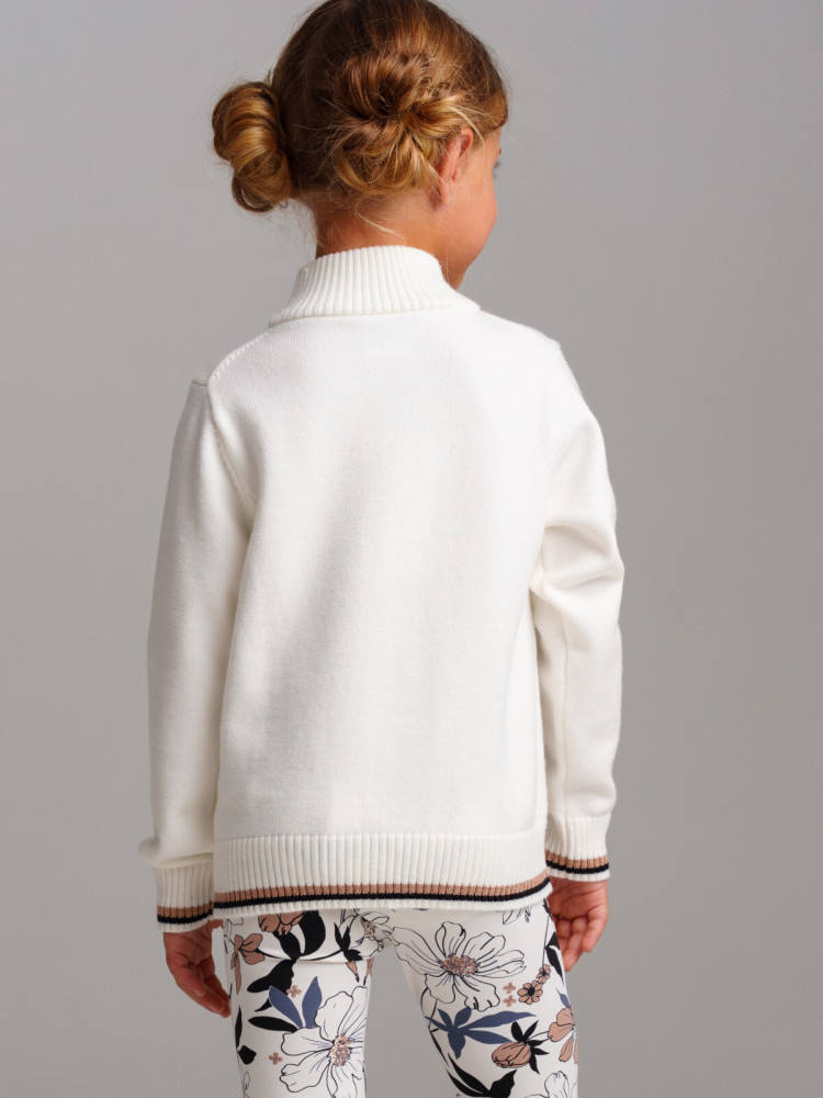 Свитер из вязаного трикотажа. Высокое содержание вискозы. Вискоза отличается высокой гигроскопичностью — она впитывает влагу и отлично сохраняет тепло. Горловина, манжеты и низ изделия в рубчик.
