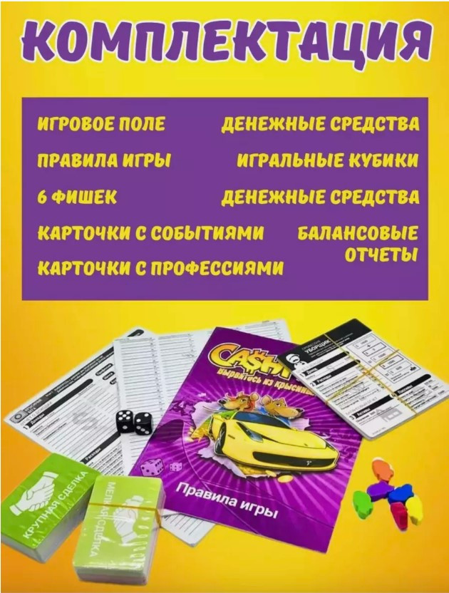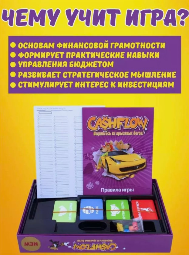 💳 Оплатить за товар можно при получении 🇰🇿 Есть бесплатная доставка по Казахстану от 1 дня 🎁 Копите бонусы с каждой покупки Настольная игра «Денежный Поток» по книге Роберта Кийосаки «Богатый папа, бедный папа» — это игра, которая научит вас и ваших друзей основам финансовой грамотности. Она подойдет как для детей, так и для взрослых, идеально подходит для проведения компаний или вечеринок. Эта настольная игра разработана специально для тех, кто хочет улучшить свои финансовые навыки и развить свою финансовую грамотность. Игра затягивает своей интересной динамикой и задачами на внимательное зрительное восприятие, что делает ее не только полезной, но и увлекательной. «Денежный Поток» поможет вам научиться правильно распоряжаться деньгами, научит правильно вкладывать, прокладывать путь к процветанию и научит вас экономить на правильных вещах. Попробуйте один раз и вы не забудете про эту увлекательную и бесценную настольную игру для денежной грамотности. В «Денежный Поток» вы сможете научиться создавать идеальный бизнес, развивать его, инвестировать, все это на пути к миллионам. Игра Кэшфлоу помогает понять основные принципы финансов и научиться правильно управлять своими финансами. Не упустите возможность приобщить себя к миру финансовой грамотности. Приобретите сейчас эту игру для компании, настолько увлекательную и интересную. Напомним, что правила игры очень просты, а игроков могут быть сколько угодно. Начните развиваться уже сегодня и приобретайте не только игру, но и свой персональный курс по финансовой грамотности! |