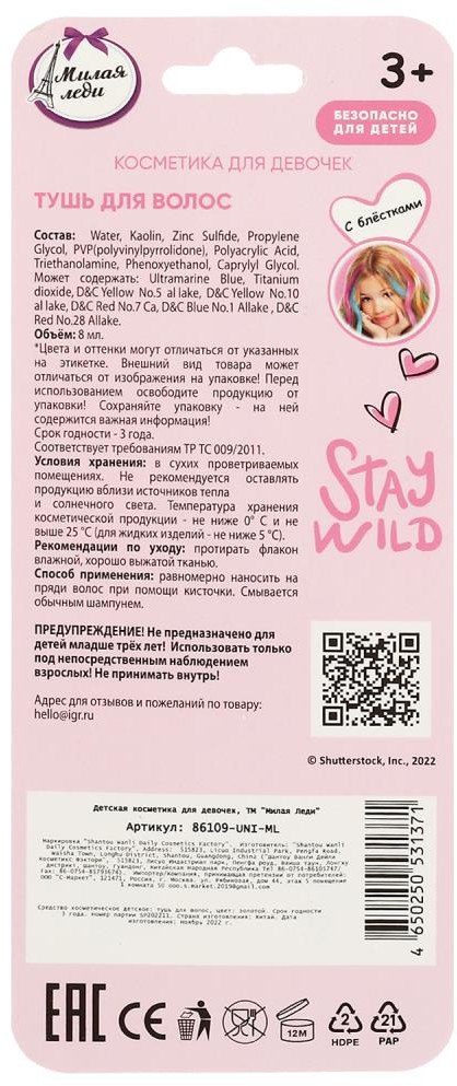Милая Леди Тушь для волос с блёстками, цвет Золотой