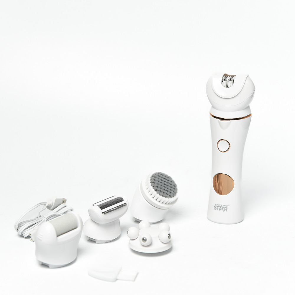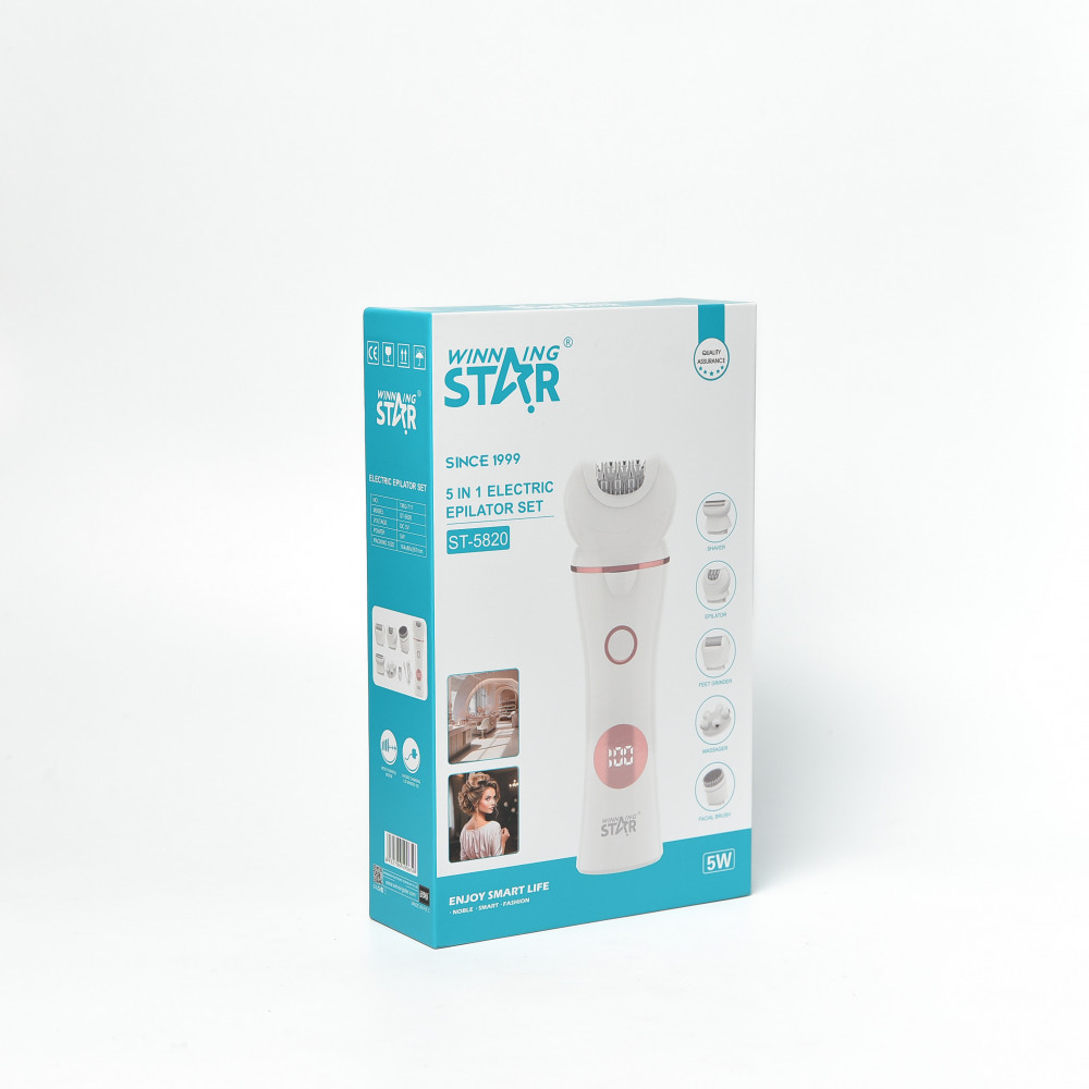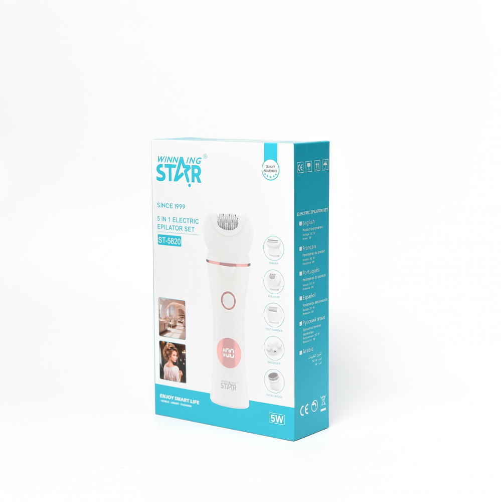 Winning Star Эпилятор 5 в 1В данный момент этот товар отсутствует в продаже. Возможно, у нас найдется аналогичный или похожий товар здесь. Этот комплект эпилятора 5 в 1 станет настоящим мастером по уходу за вашим телом! Водонепроницаемость IPX6 — вы можете спокойно использовать устройство в ванной или душе, не беспокоясь о его безопасности. В набор входят 5 насадок: бритва для гладкого бритья, эпилятор для длительного эффекта, шлифовальная машинка для ног, массажер и щетка для лица — всё, что нужно для полноценного ухода за собой.Устройство оснащено встроенной батареей на 800 мАч, которая обеспечивает до 2 часов работы после полной зарядки всего за 2 часа. На корпусе есть ЖК-дисплей, который покажет всю необходимую информацию, а благодаря функции PCB вы сможете максимально эффективно использовать прибор. Удобная зарядка через USB-кабель с 8-образным портом делает процесс зарядки простым и быстрым. |