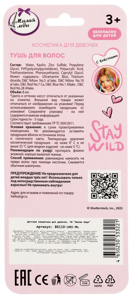 Милая Леди Тушь для волос с блёстками, цвет серебряный