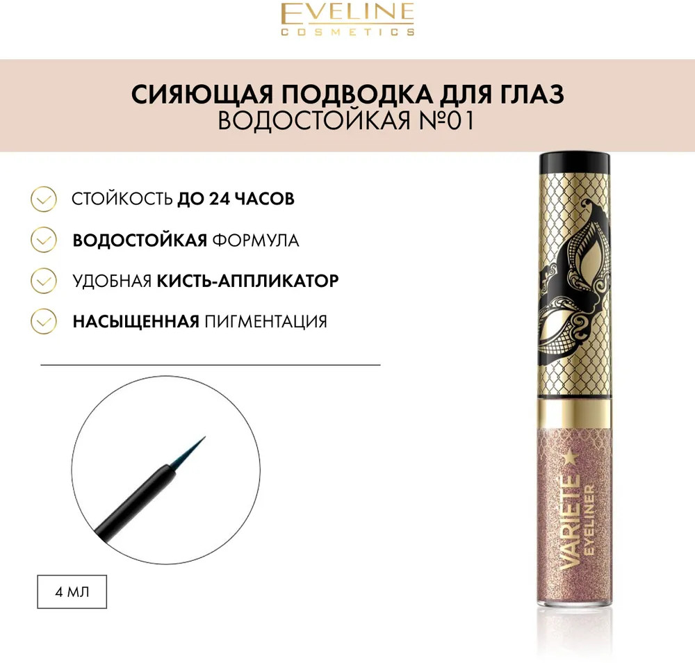 Eveline Cosmetics Подводка для век сиюящая с глиттером «Variete», оттенок 01 Sparkle Gold