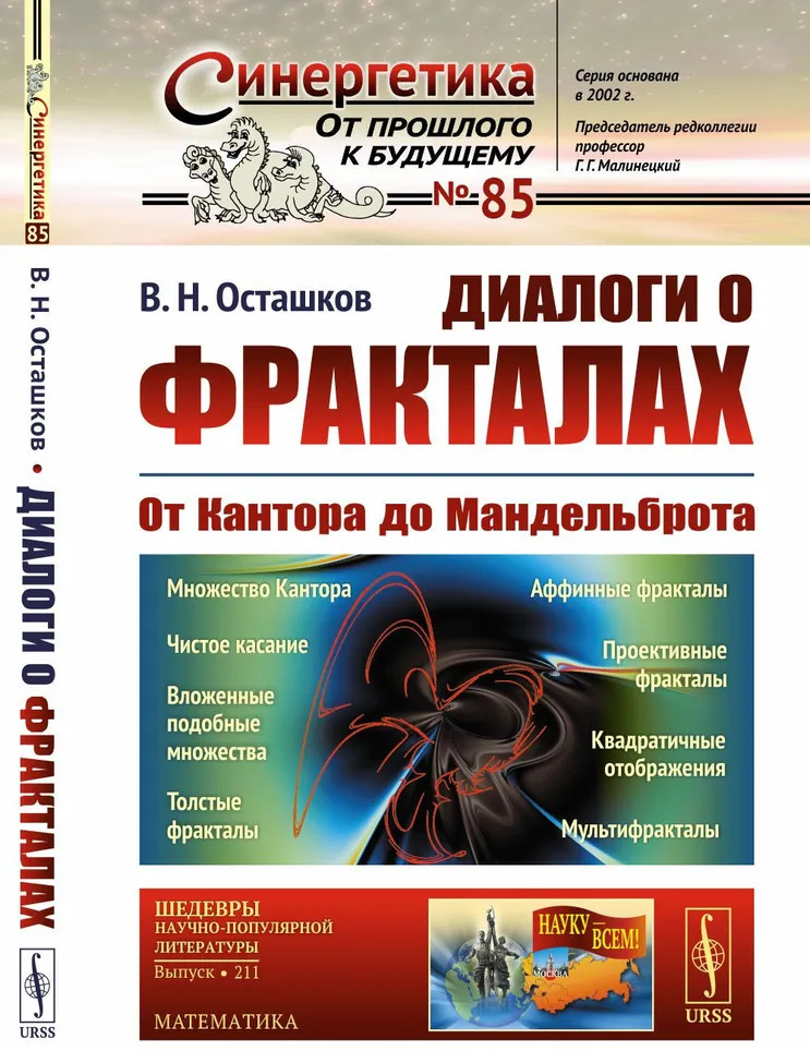 Диалоги о фракталах. От Кантора до МандельбротаВ данный момент этот товар отсутствует в продаже. Возможно, у нас найдется аналогичный или похожий товар здесь. Серия: Синергетика: от прошлого к будущему Настоящую книгу в какой-то мере можно отнести к блестящему, хотя и своеобразному, образцу жанра «фэнтези». Три персонажа — вдумчивый Макс, креативный Ник и зеленоглазая Эсмеральда — не без иронии обсуждают глубокие идеи фрактальной геометрии, знакомя читателя с математическими джунглями, состоящими из самоподобных растений чарующей красоты. Изложение материала в форме беседы позволяет автору сказать просто о сложном, популярно о научном, ясно о туманном. В книге исследуются элементы фрактальной геометрии: понятия фрактала и мультифрактала; размерности Хаусдорфа—Безиковича, Минковского, Реньи; построение фракталов как аттракторов системы итерированных подобий, аффинных, проективных и квадратичных кремоновых преобразований, а также как образов булевых функций; свойства и методы исследования фрактальных структур. Рассматриваются также приложения в инженерной практике. |