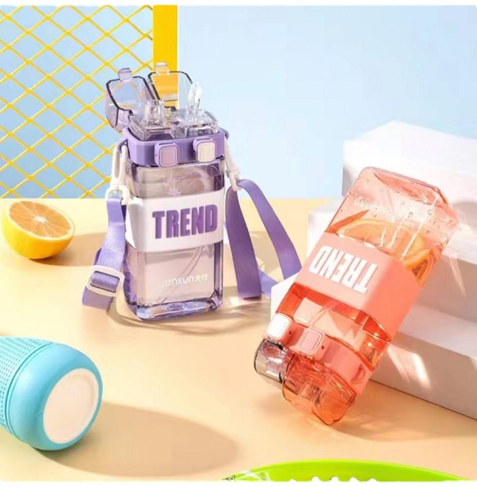 Бутылка для воды с ремешком изготовлена из пластика, который является прочным и долговечным. Вмещает до 520 мл жидкости для удовлетворения ваших ежедневных потребностей в увлажнении. Горлышко бутылки с водой в виде соломинки снабжено герметичной крышкой для сохранения соломинки в чистоте. Бутылка имеет двойную конструкцию горлышка для питья, с одной стороны — мягкая силиконовая соломинка с предохранителем, а с другой — жесткая соломинка для перемешивания с пылезащитным колпачком. Вы можете использовать одно отделение для сока или молока, а другое — для воды. Бутылка оснащена регулируемым плечевым ремнем, подходящим для всех возрастов, что делает ее идеальной для занятий спортом на открытом воздухе, йогой, тренажерным залом, офисом, путешествиями и кемпингом. При нажатии на кнопку соломинка автоматически выскочит. Цвет милой бутылочки для воды подходит для всех сезонов, подходит для детей и взрослых.