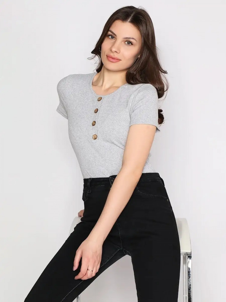 Базовое боди с коротким рукавом и пуговицами из качественного материала кашкорсе станет самой любимой вещью вашего гардероба! Кашкорсе – это разновидность эластичного трикотажа в рубчик, в составе хлопок и лайкра, что позволяет одновременно пропускать воздух и впитывать влагу, а также быть износостойкой, прочной и отлично держать форму. Декоративные пуговицы отлично дополняют боди. Трикотажная блузка сочетается с брюками, джинсами и юбками. Приталенный крой подчеркнет фигуру, подходит невысоким и высоким девушкам. Классическое боди подойдет для использования дома или спорте и танцах, для офиса или просто в путешествиях. Вы можете создать любой образ под свое настроение и любую погоду. Однотонное боди мягкое на ощупь и приятно прилегает к телу. Кофта подойдёт для создания как нарядных, так и вечерних образов. Такой look замечателен на Новый год или для фотосессии. Широкий размерный ряд позволяет удовлетворить потребности женщин любой комплектации. Внизу боди крепится на крючки, что максимально удобно и комфортно при носке. Для Вас несколько цветов на выбор.