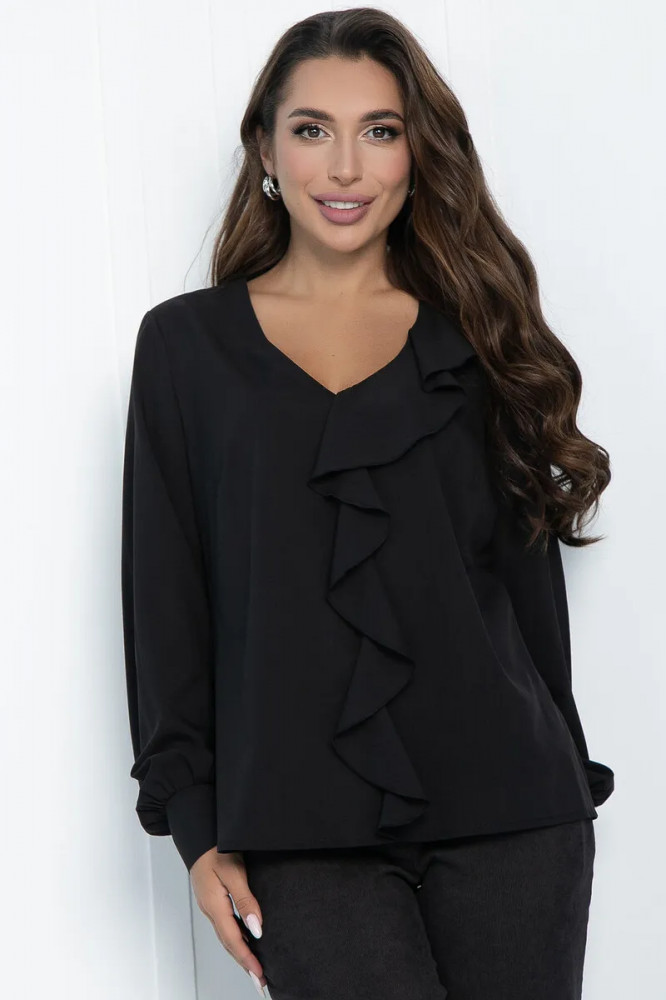 Блуза понравилась, подошла к нарядной юбке, волан не помешал, действительно добавил кокетливость. Очень хорошо смотрится и с брюками, все соответствует описанию изделия.